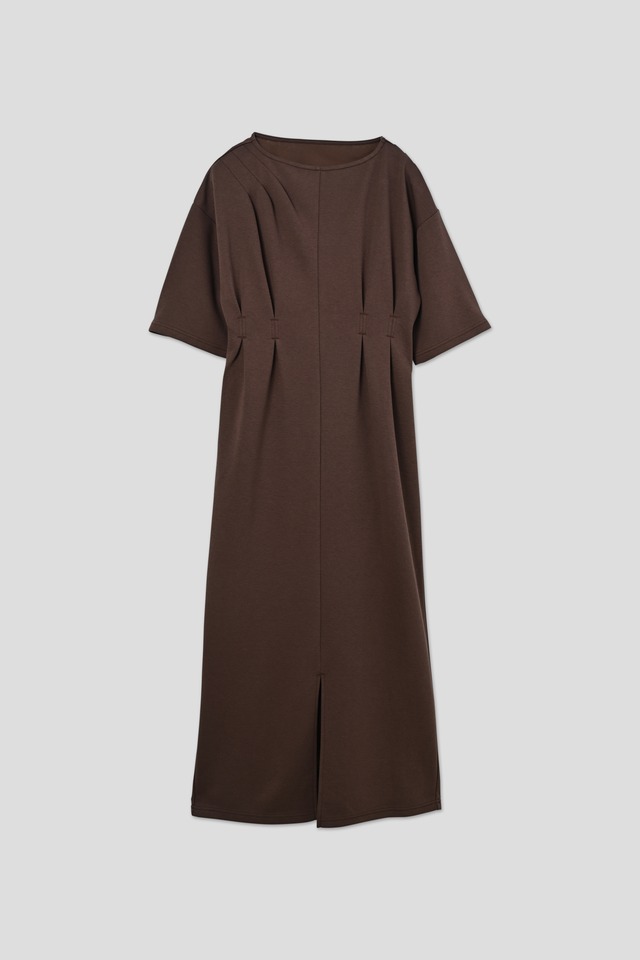 タックとドレープで変化とつけたカットソードレス 肩からアシンメトリーにタックを入れて胸元に流れを作っています。 ウエストマーク位置にタックをとって、すっきりしたフォルム 後ろウエストにタックをとってヒップラインに流れるようにゆとりを持たせています ヒップのラインが出やすい箇所をデザインでカバーしています シンプルに見えて、デザインの要素が詰まったこだわりのドレスです ■素材 表地: 綿 62% ポリエステル 33% ポリウレタン 5% 別布: 綿 58% ポリエステル 37% ポリウレタン 5% 光沢感: なし / 伸縮性: なし / 透け感: なし