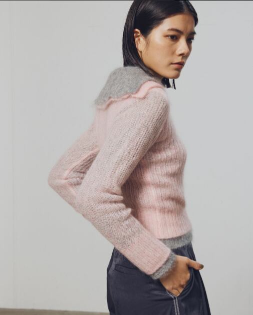 最高級原毛と言われるスーパーキッドモヘアを使用した、ビッグカラーがcoelらしいポロニットです。