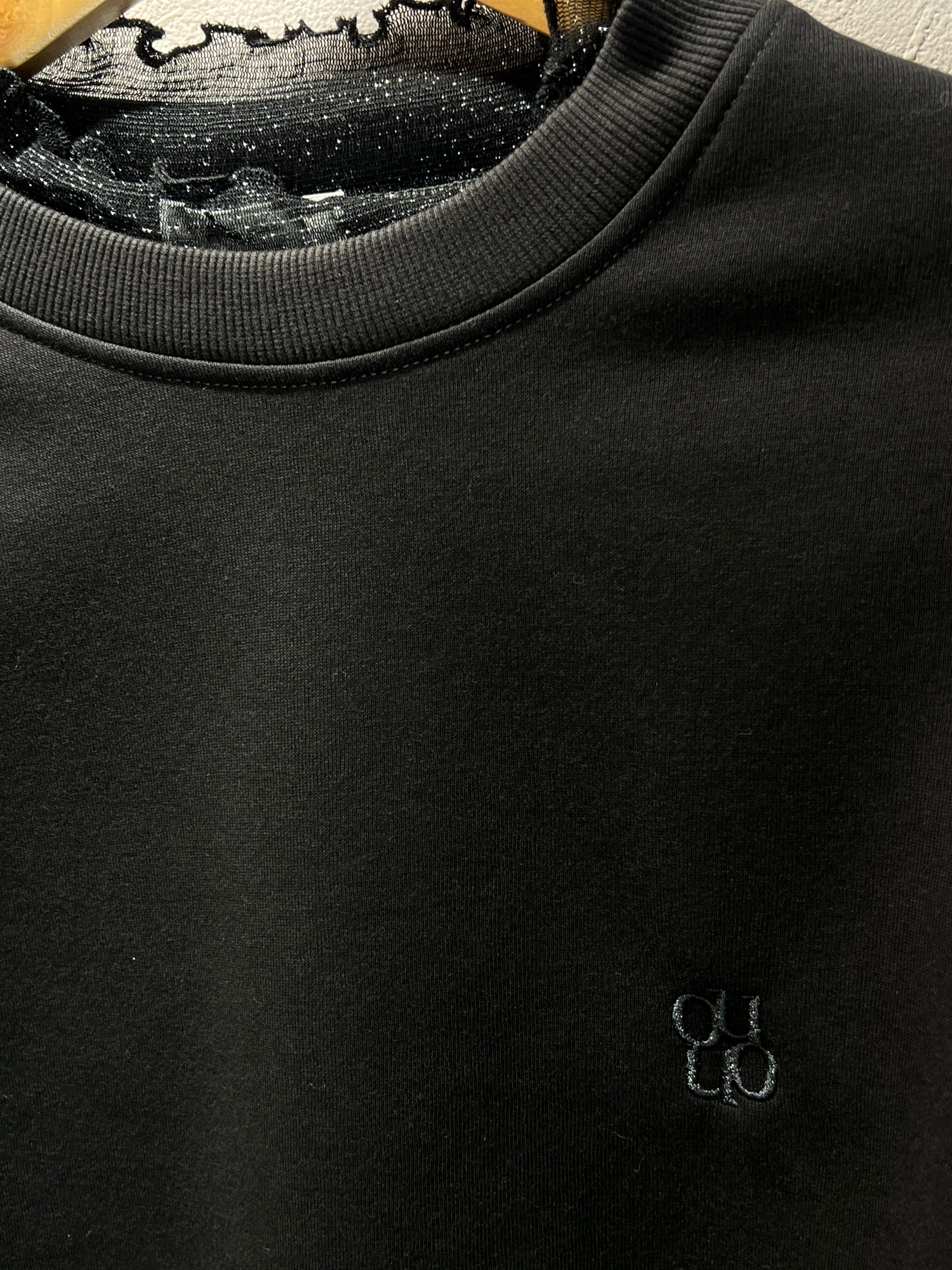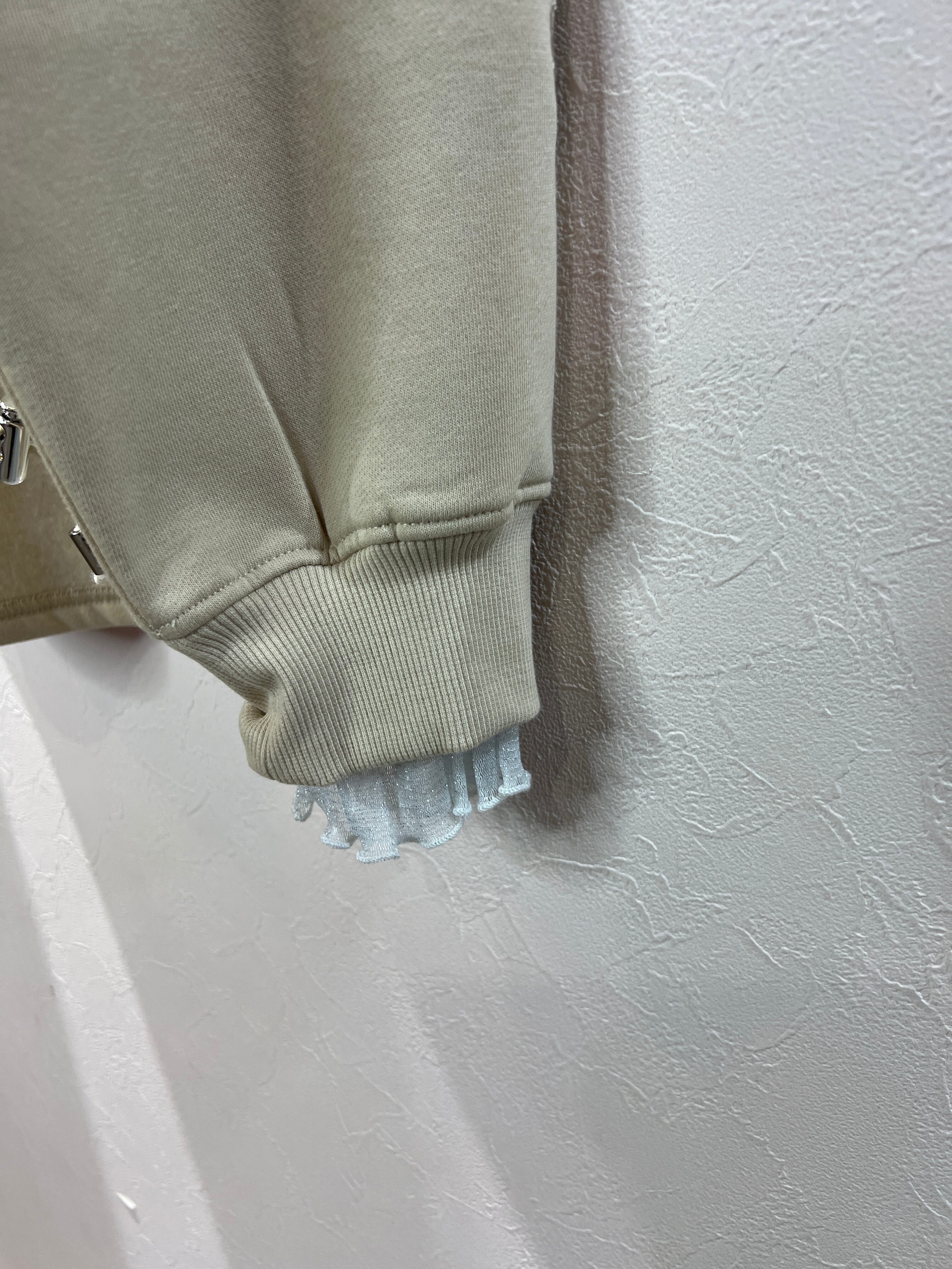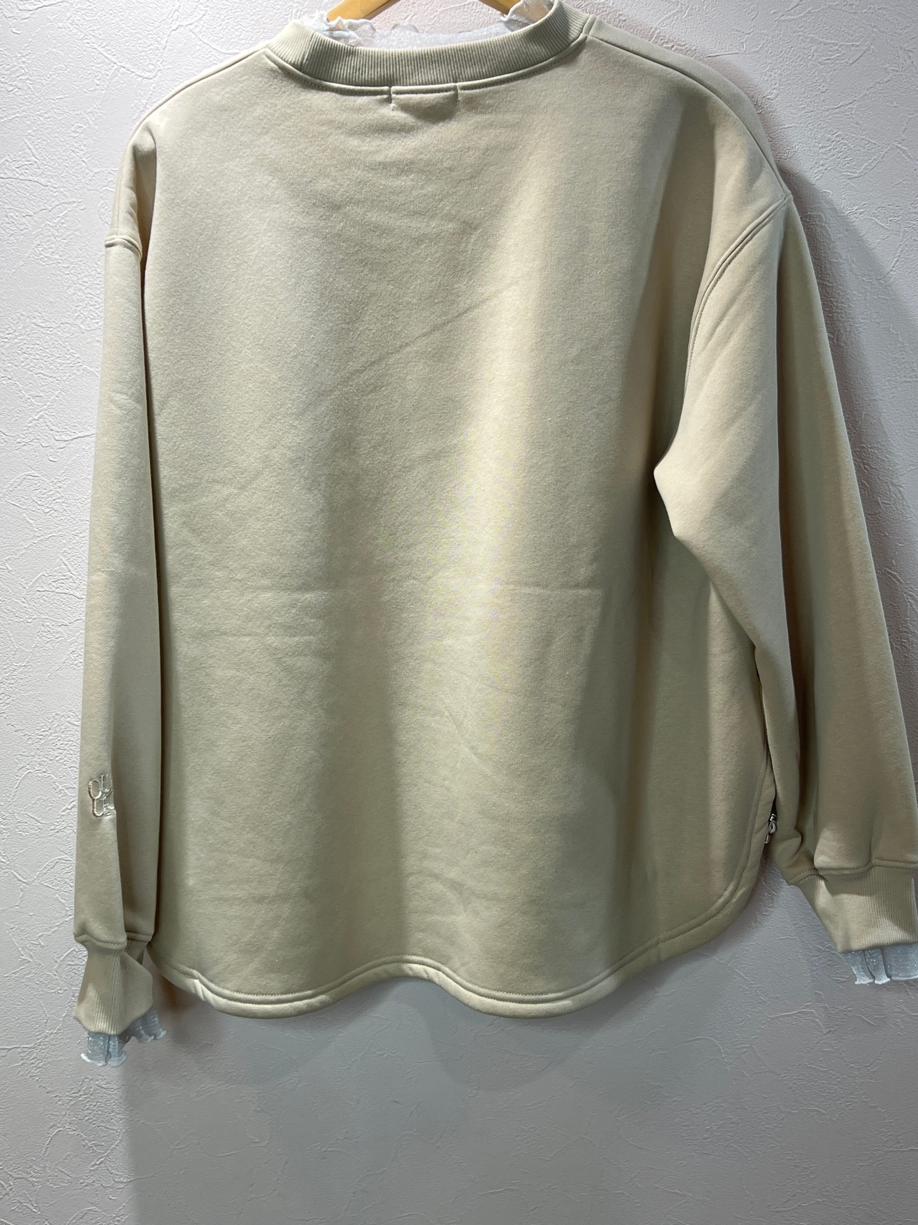 ふんわりとした裏起毛素材が、肌に優しい柔らかさを提供し、心地よい暖かさでリラックスした着心地を楽しむことができます。また、ドッキングデザインのチュールが、シンプルながらも華やかさをプラスし、カジュアルスタイルだけでなく、特別な日のコーディネートにもぴったりです。