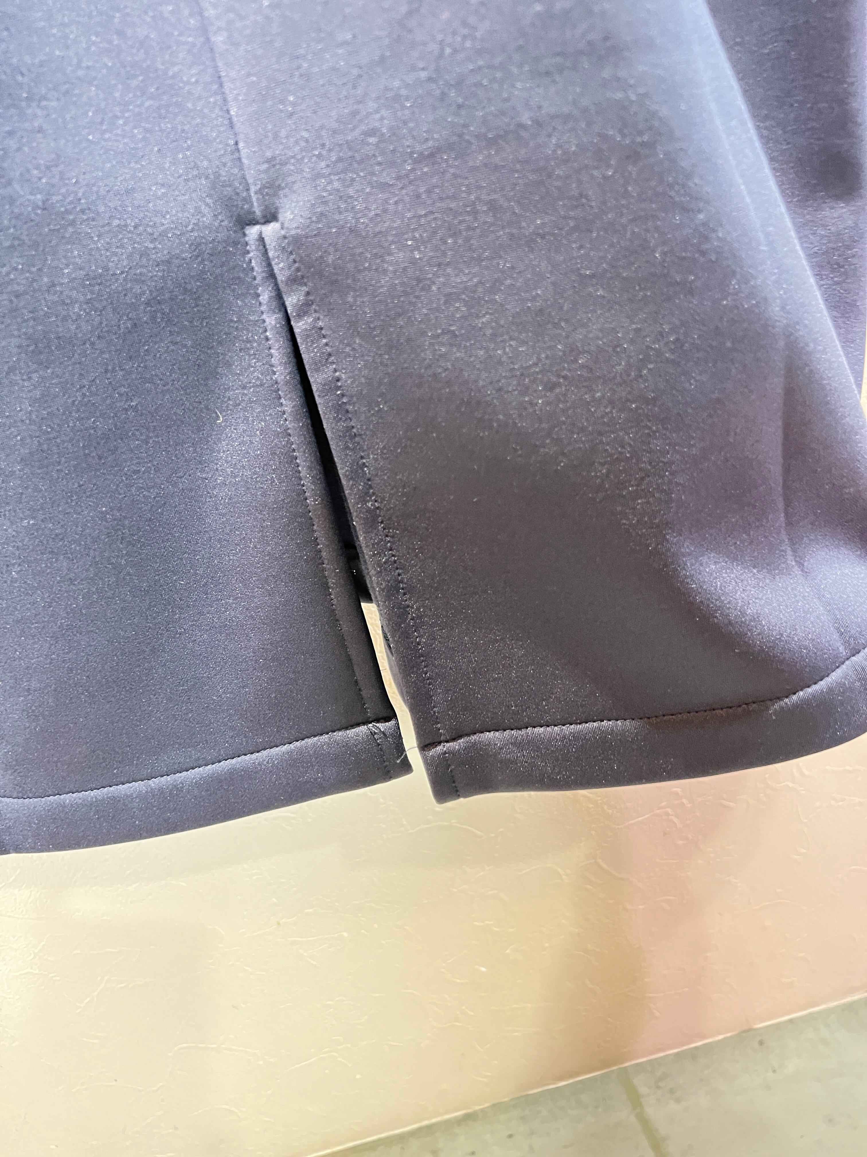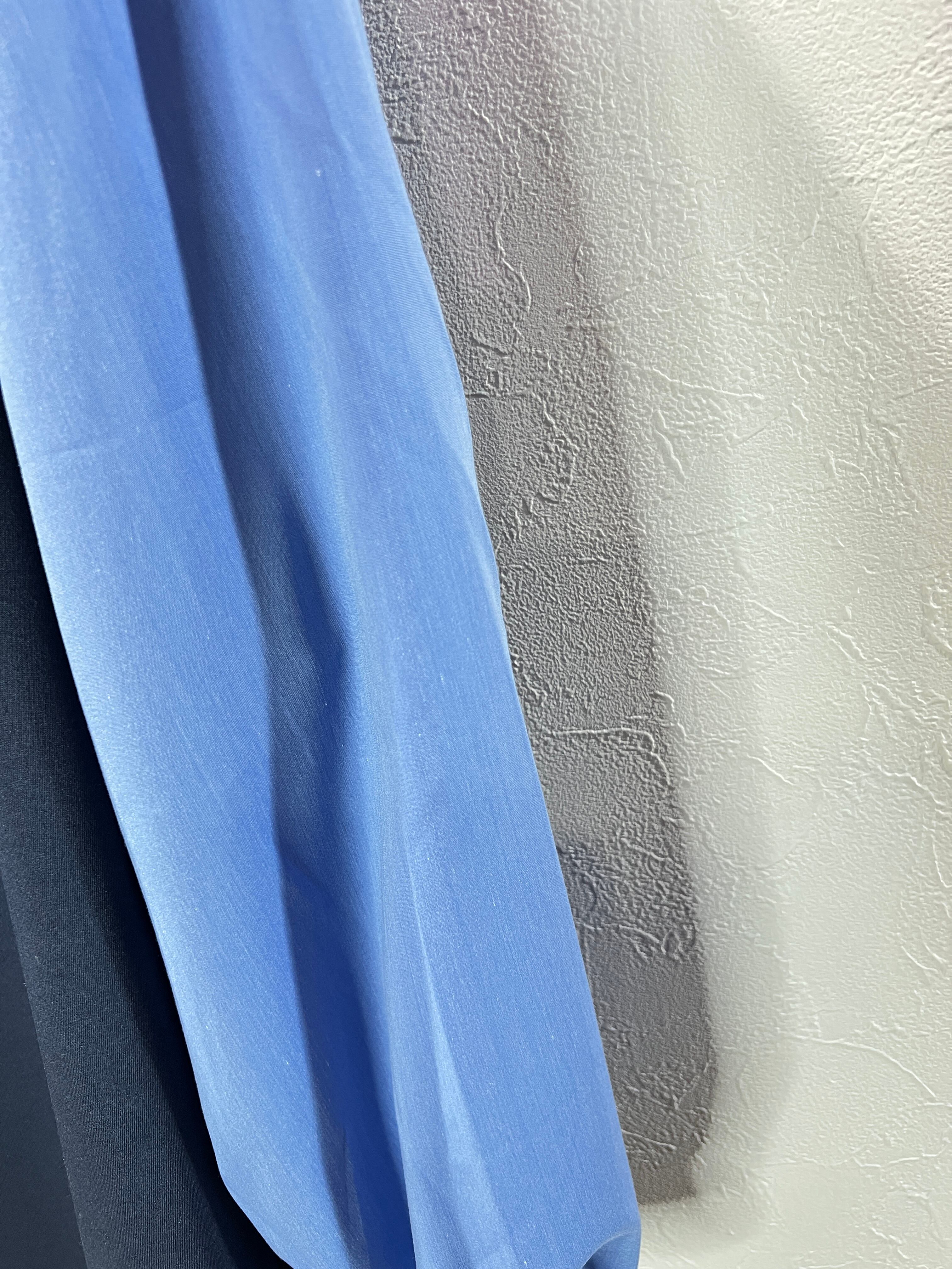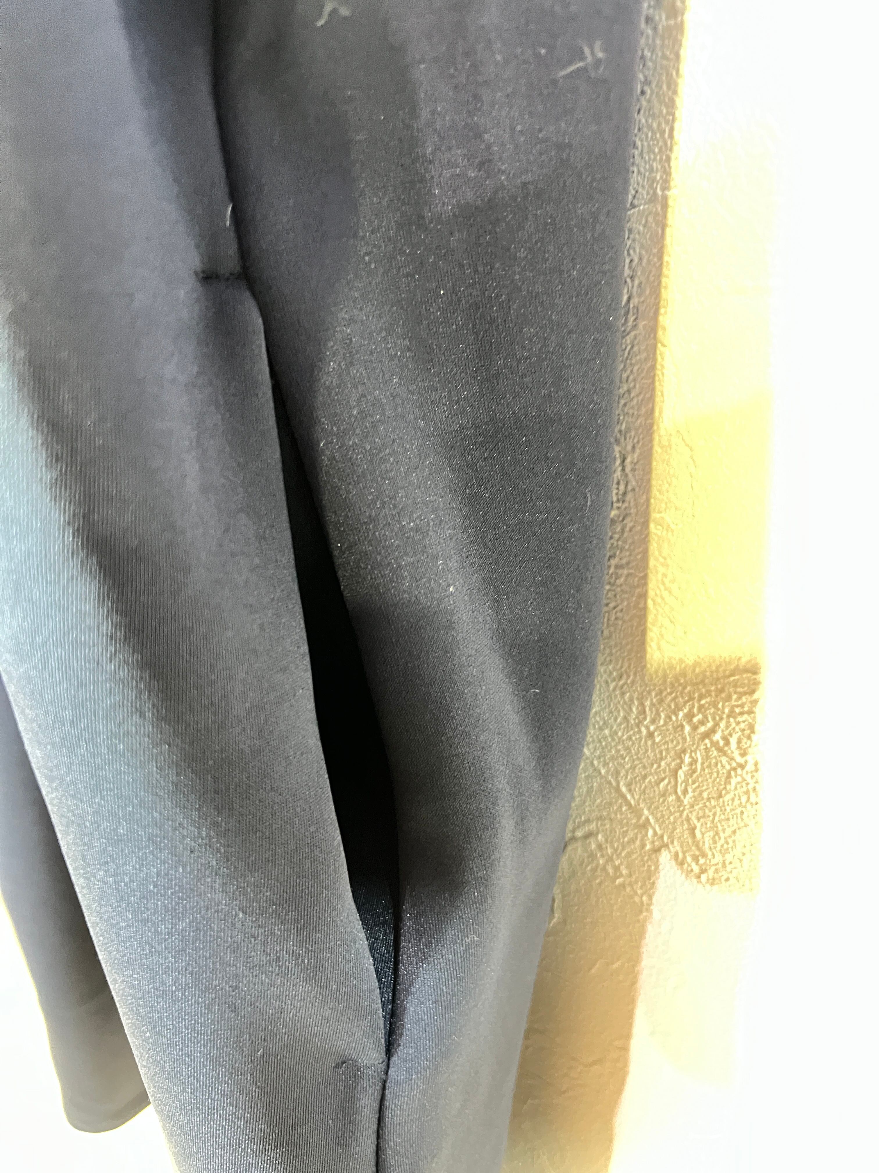 裏起毛のダンボール素材のカットソーをグラウンドにしてポリエステル、レーヨン素材のブラウス素材を袖に使用