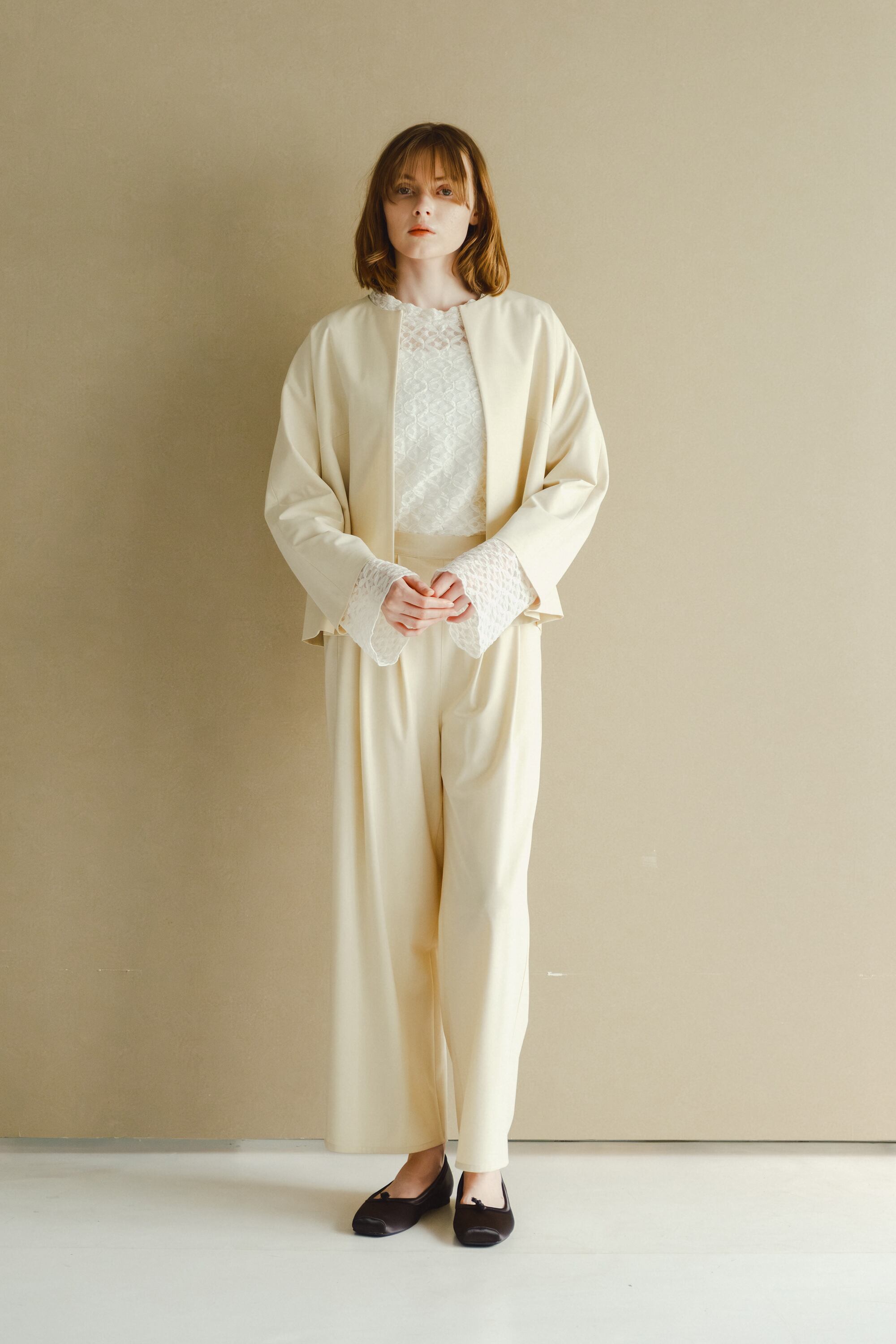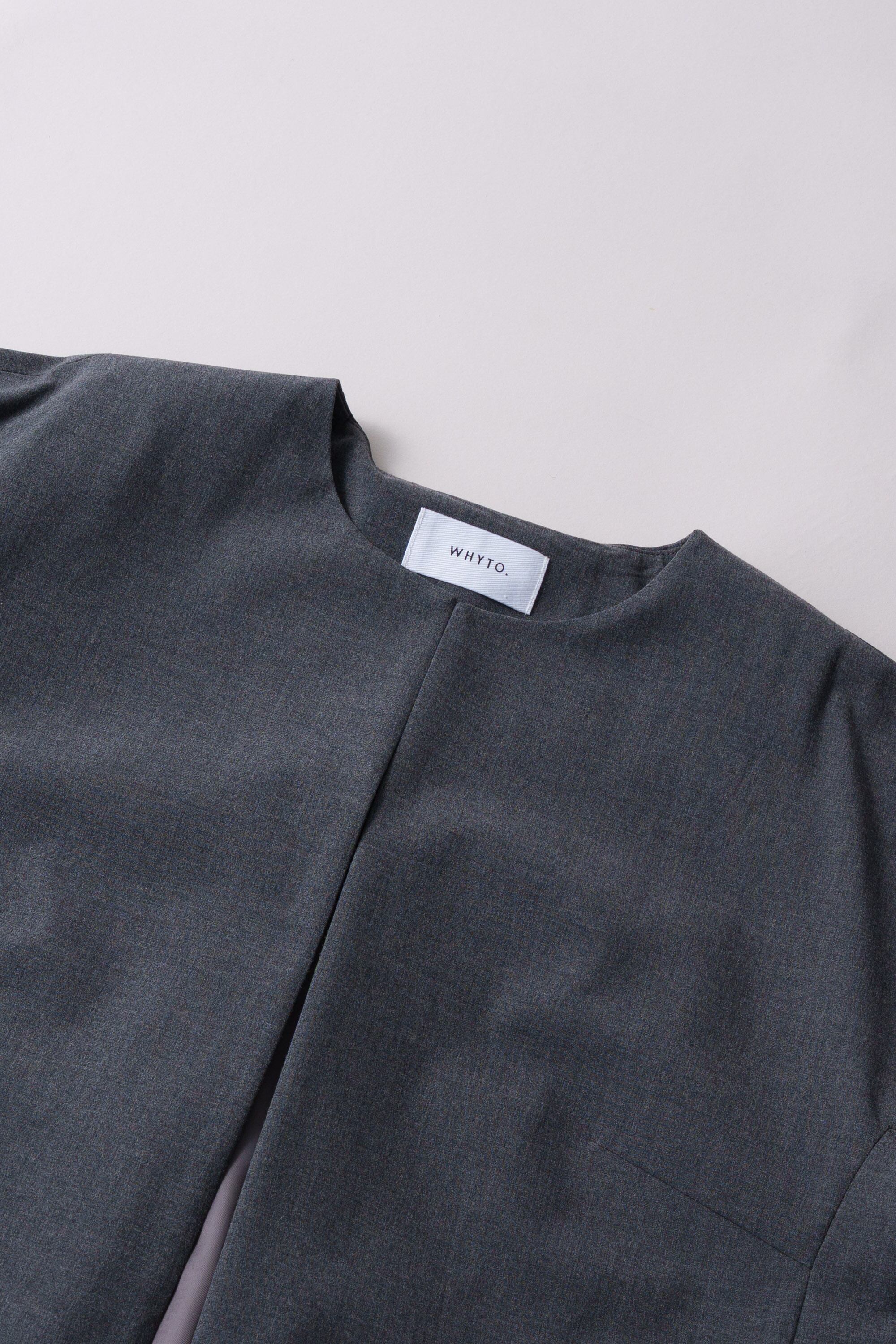 フロントは、開けてスッキリ着用できる様なラインを意識していますが、1箇所ホック留めできるディティールを作っており、シーンごとで着用方法を選んでいただけます。