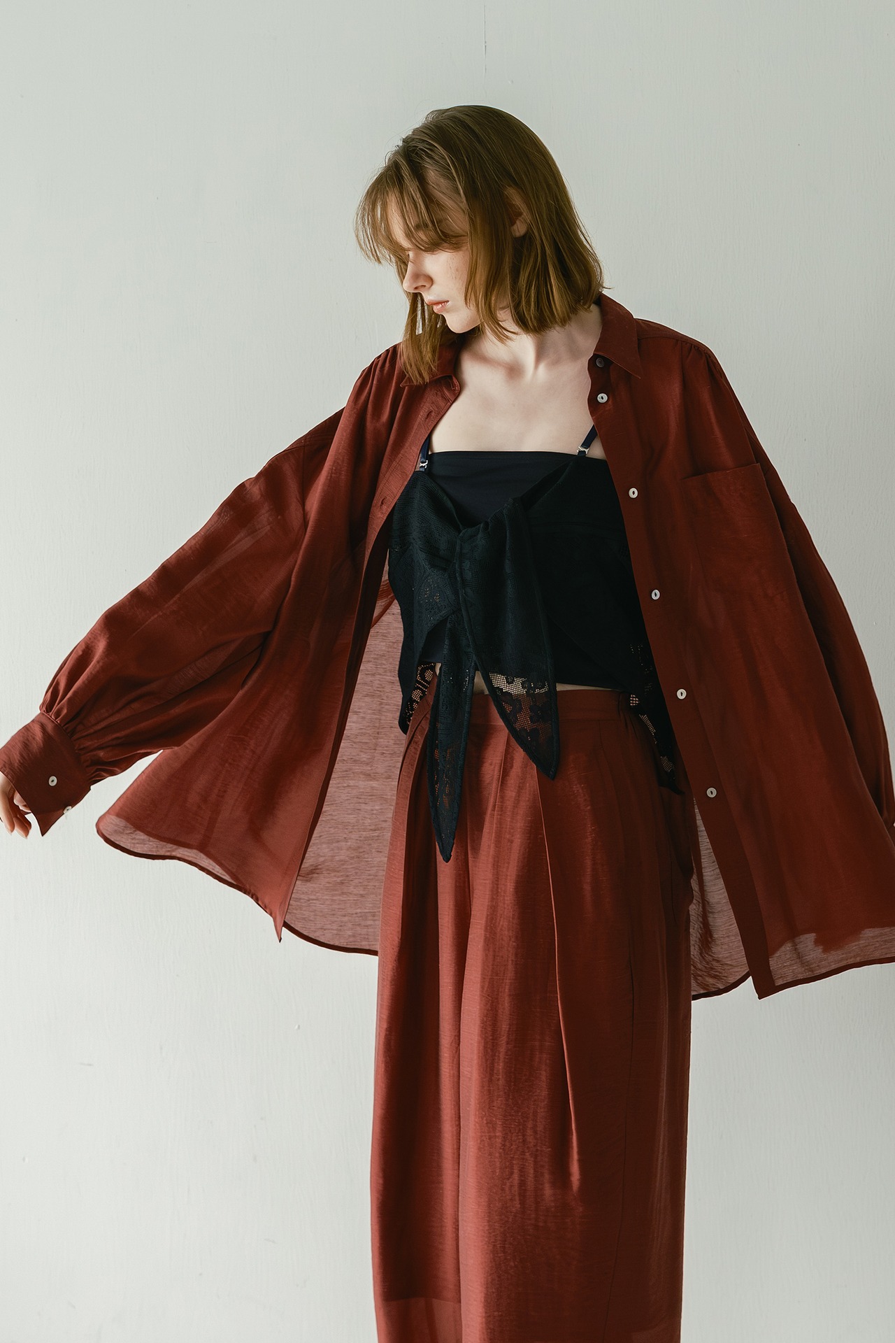 ・大きめなシルエットですが、シアー感があるのでフワッとしたエアリーな雰囲気が涼しげです。